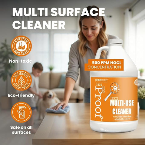 OrbitEnviro Hypochlorous Acid Sanitizer Cleaner | HOCl 500 PPM | Multi-Surface Cleaner for Home, Gym, Office & Pets | 1 Gallon